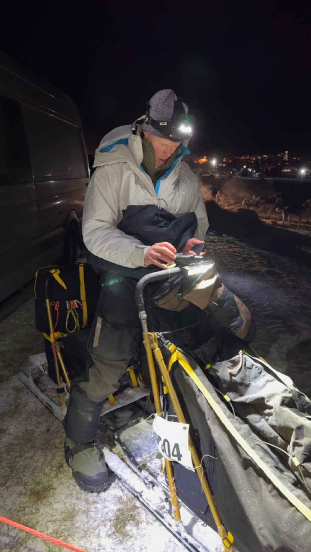 Dag Erik på sleden under Gruveløpet.